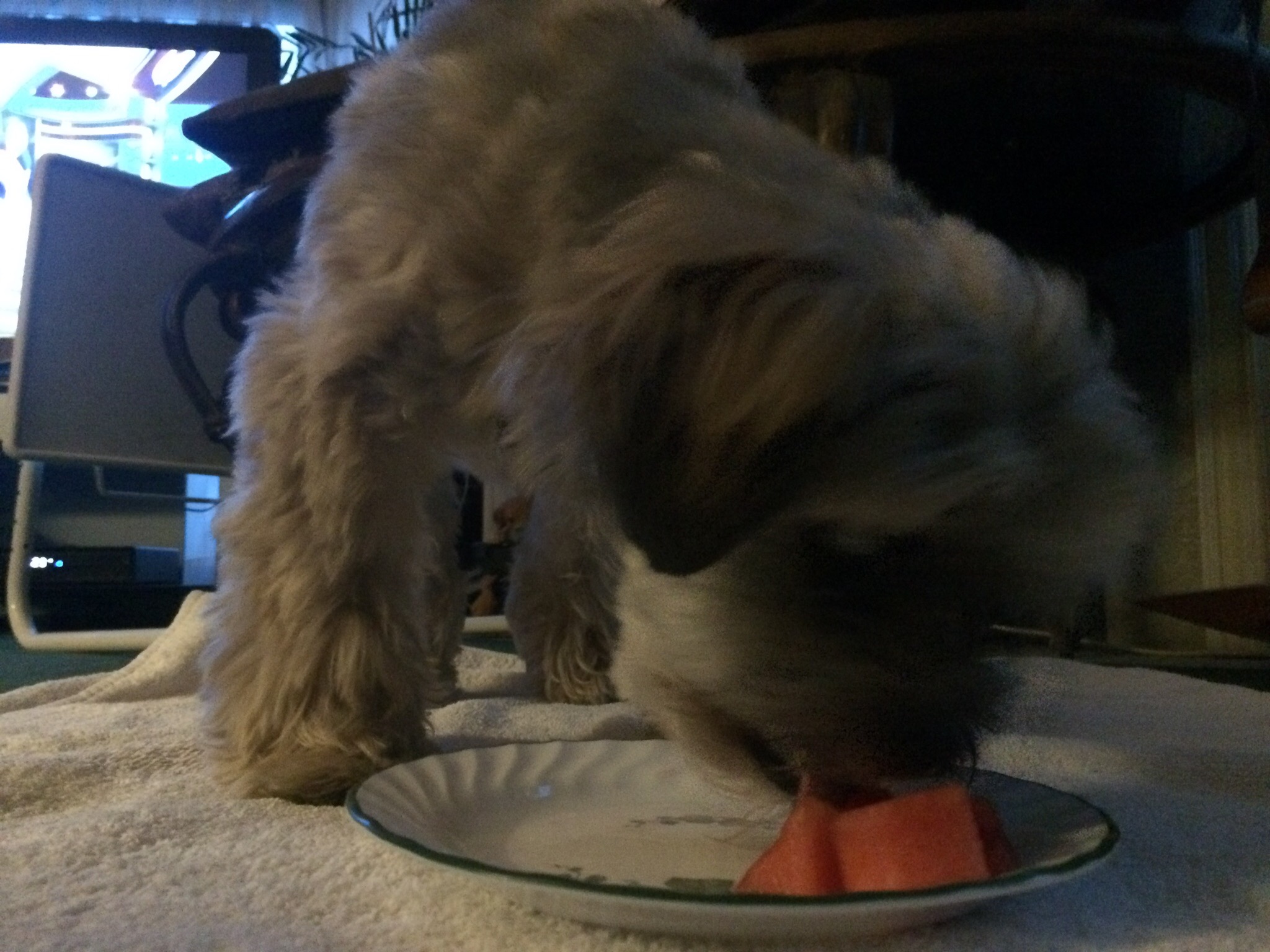 All in all, it was a nice little visit. Dad taught me how to watch someone install a garbage disposal (I’m really good at it!), we made some yummy food together and then caught a movie. (Side note: The movie Get Out is freaking fantastic!) Of course we didn’t forget mom or Riley during our Daddy Daughter Date. We brought mom our leftover popcorn and then Dad cut up some of the fresh watermelon he bought earlier for Riley to enjoy.